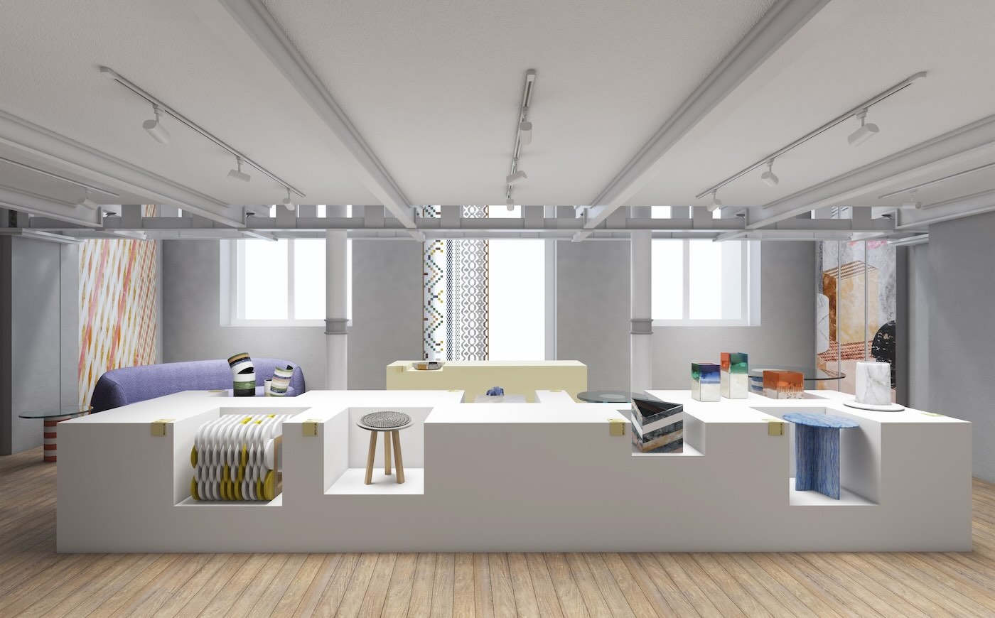L’allestimento, firmato da Alessandra Malagoli Budri, direttrice creativa del marchio, e da Francesca Renai – designer con una solida esperienza maturata a fianco di Patricia Urquiola – organizza questo patrimonio come una timeline, dove ogni progetto diventa un passaggio di un dialogo continuo tra progetto e lavorazione. La pietra smette di essere supporto e diventa linguaggio, capace di assumere configurazioni sempre diverse.