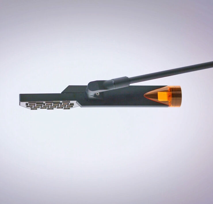Le ricerche di Axolight in termini di comfort illuminotecnico hanno portato ad alcune implementazioni hi-tech, tra cui l’inserimento di uno snodo orientabile che consente di volgere la luce nella direzione desiderata e l’utilizzo di una fonte Led al posto dell’originaria lampadina a incandescenza. Inalterati i materiali: la base in ecopelle nera, la cui forma ricorda un bulbo o una cipolla, contiene granuli di marmo e consente di inclinare l’asta in alluminio che termina con il profilo tagliato a laser di una lampadina.
