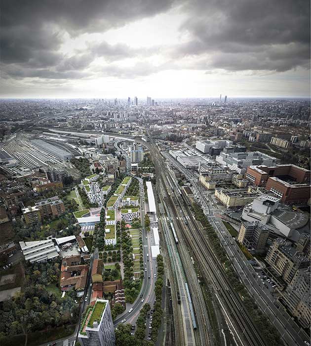 Si tratta del terzo progetto di rigenerazione urbana che riguarda gli ex-scali ferroviari milanesi – per la precisione lo scalo di Greco – dopo quelli di Farini e San Cristoforo: un’area di 62.000 mq che comprende l’ex scalo ferroviario accanto alla stazione Greco-Pirelli, un’area verde su via Breda e un binario dismesso che si affaccia a ovest sul quartiere milanese di Bicocca.