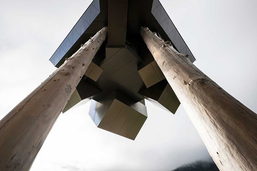 «Il livello inferiore della piattaforma provoca nell’osservatore una sensazione di straniamento. Mentre si scende, la temperatura sale e l’ambiente diventa più protetto. Sembra una discesa nel centro della terra, con il conseguente ribaltamento dei poli» riassume l’architetto Gottfried Gruber, che ha supervisionato il progetto.