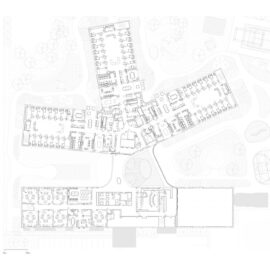 Le tre ali residenziali, collegate da un passaggio trasversale, accolgono le unità abitative. Questo corridoio centrale diventa una soglia simbolica tra due mondi – scuola e casa, spazio pubblico e intimità – e rappresenta un momento di transizione fisica ed emotiva.