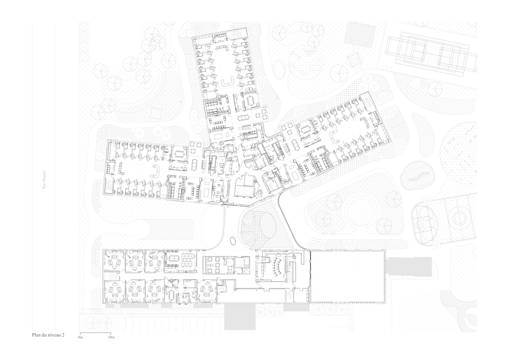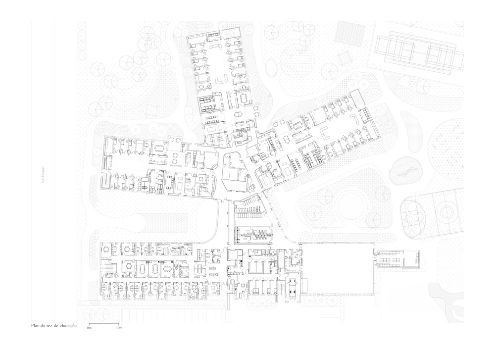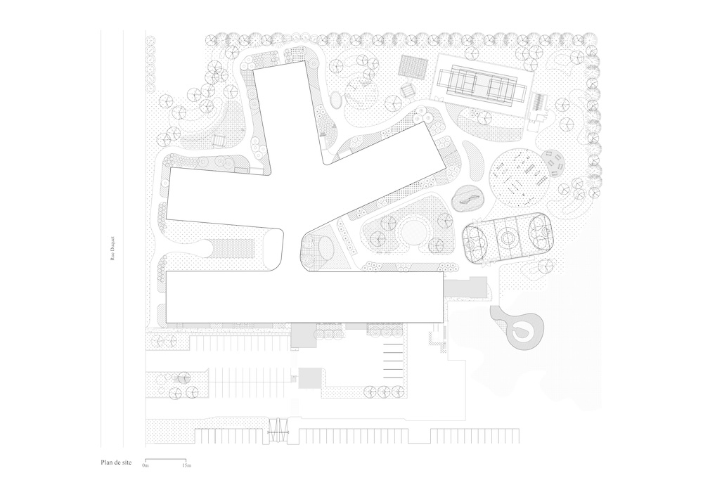 All’esterno, il progetto si completa con un paesaggio articolato in diverse aree tematiche dedicate all’attività fisica, alla socialità o alla contemplazione.