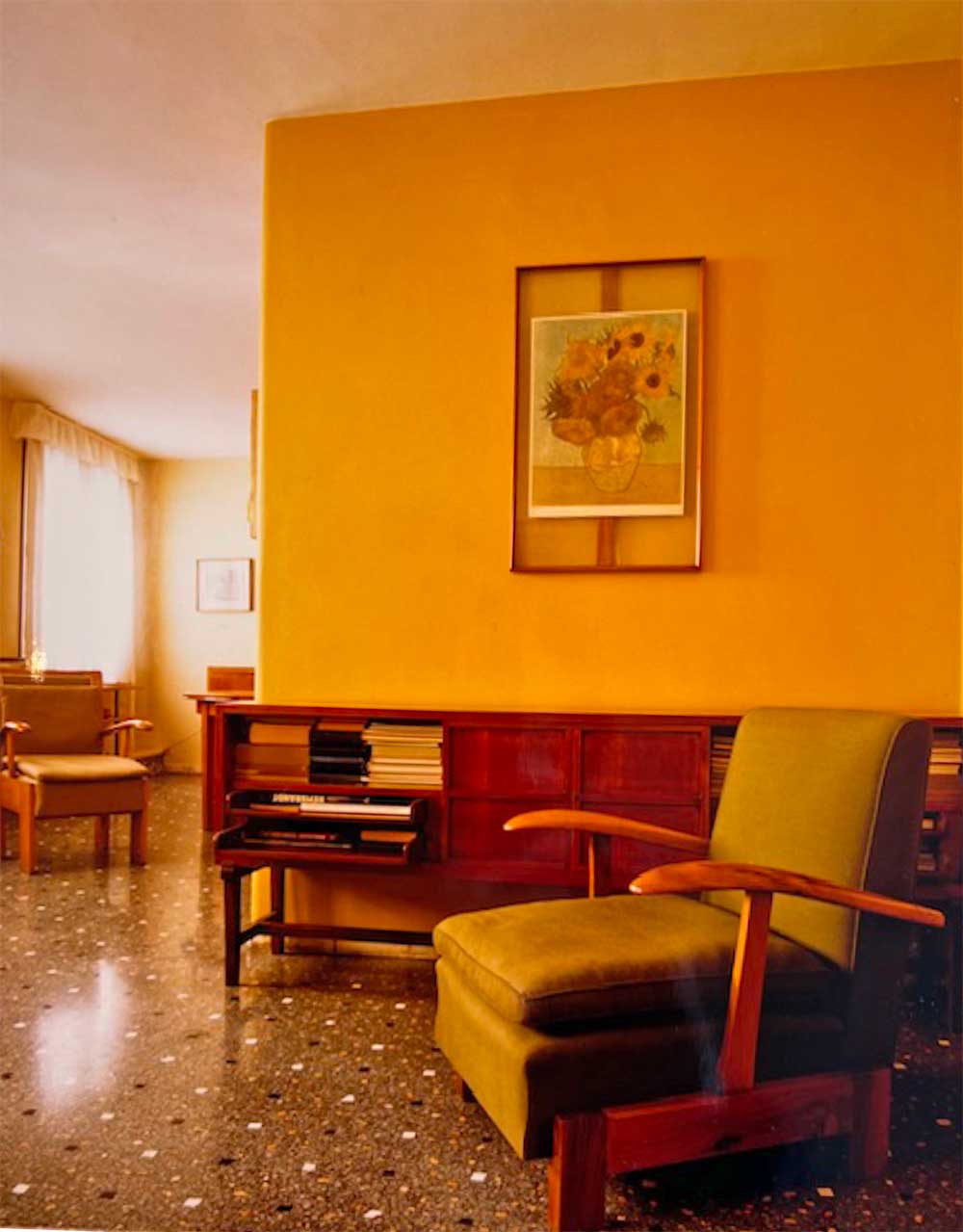 Una trentina di disegni affiancati da scatti fotografici realizzati a metà degli anni Novanta, prima della dispersione degli arredi, restituiscono gli interni di casa Pelizzari. Fotografie d’epoca ritraggono gli spazi residenziali e gli ambienti adibiti a negozio di tessuti “Tessil Adriatica” di casa Bellotto, a cui si aggiungono in mostra alcuni arredi originali realizzati dalla falegnameria Capovilla. Infine la proposta di progetto (poi non realizzata) per casa Gianmario Vianello (1951) è illustrata da riproduzioni di disegni di planimetrie e studi di prospetto, oggi in possesso degli eredi della famiglia.