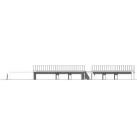 La modulazione A-B-A-B ha permesso di rendere l’edificio più centrale rispetto al lotto e di dare un ordine alla composizione architettonica. I tunnel di ingresso e collegamento a tetto piano hanno le medesime volumetrie, così come i corpi di fabbrica realizzati con copertura a un solo spiovente.