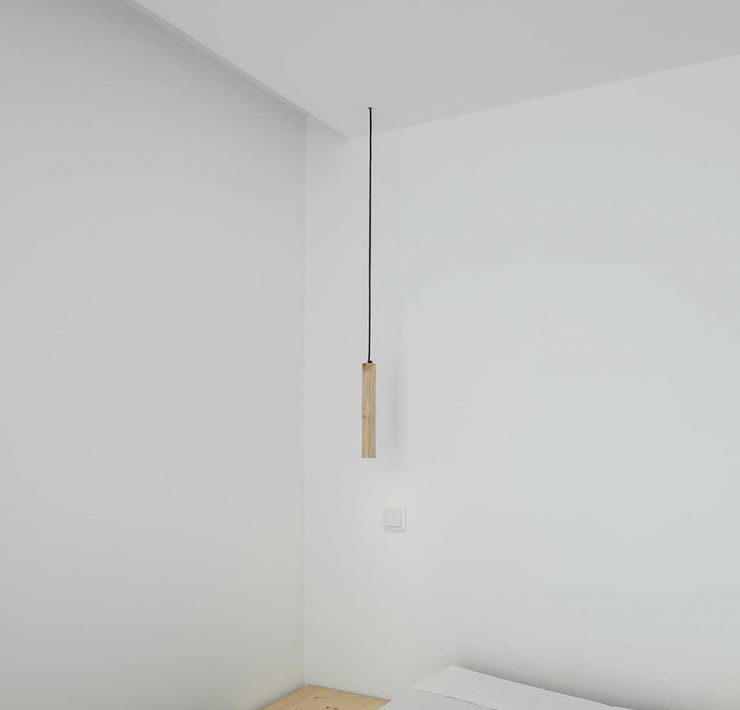 La costruzione è organizzata attraverso un asse principale che opera come elemento di confine tra l’area dedicata alla socialità e quella più privata delle stanze.