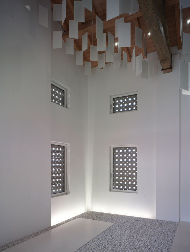 Kengo Kuma concepisce il vuoto importante quanto il pieno per una architettura in cui domina l’essenziale. L´insieme è orchestrato su un gioco di piani sovrapposti che permettono la lettura di ciò che era e di quanto è stato aggiunto, lasciando intuire la sedimentazione storica d’intervento nell’edificio.