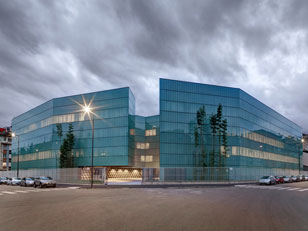 Levigato e compatto, del colore del ghiaccio, il volume scavato del nuovo blocco per uffici…