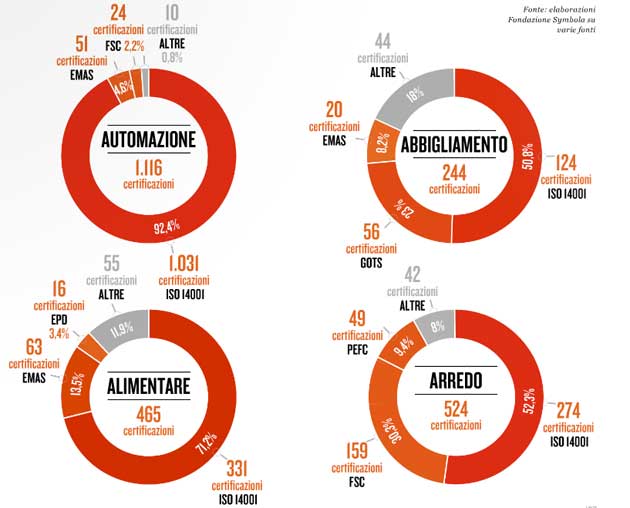 Prendendo in considerazione i quattro settori tradizionali del made in Italy, Automazione, Abbigliamento, Arredocasa, Alimentari – le cosiddette 4A – il rapporto mette a confronto le perfomance delle aziende certificate con quelle delle non certificate. Con risultati eloquenti. In piena crisi, tra il 2009 e il 2013, le imprese delle 4A amiche dell’ambiente hanno visto i loro fatturati aumentare, mediamente, del 3,5%, ovvero quasi il doppio delle altre. Ancor meglio nell’occupazione, dove le aziende certificate hanno visto crescere gli addetti del 4%, le altre solo dello 0,2%.