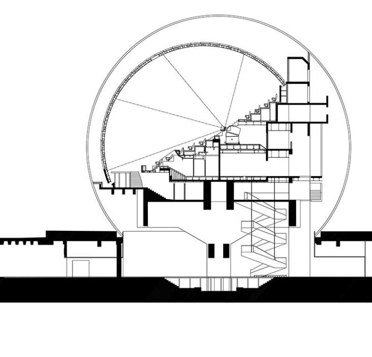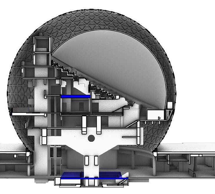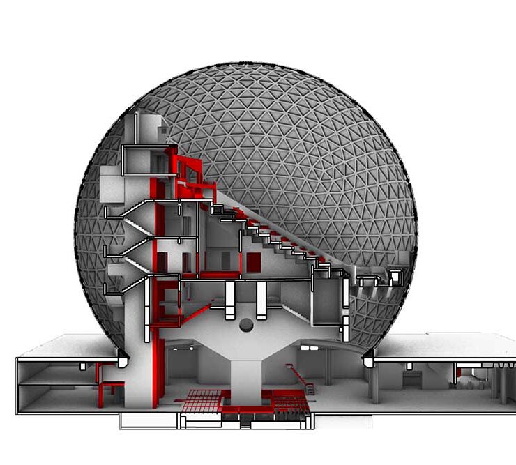 Riqualificata dallo studio Loci Anima, guidato da Françoise Raynaud, è stata riaperta a Parigi, nel Parc de la Villette, a poca distanza dalla Cité des Sciences et de l’Industrie, La Géode, la grande cupola riflettente – sono 6.433 i triangoli di acciaio inossidabile che la ricoprono – che accoglie una delle più grandi sale cinematografiche emisferiche del mondo.