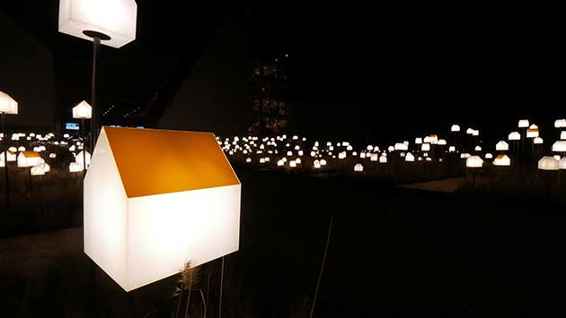 Fino al 15 marzo le 405 casette di plexiglass dell’installazione SmarTown che fece brillare per due settimane l’Orto Botanico di Milano in occasione del Fuorisalone 2018 tornano a splendere – su steli di metallo grezzo di 5 differenti altezze – tra la fitta vegetazione di graminacee che crescono nell’area esterna del Muse – Museo delle Scienze di Trento.