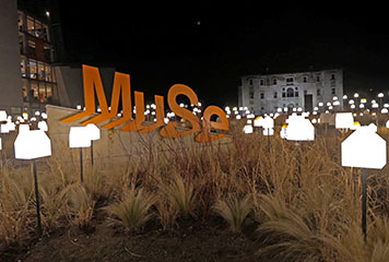 Fino al 15 marzo le 405 casette di plexiglass dell’installazione SmarTown che fece brillare per due settimane l’Orto Botanico di Milano in occasione del Fuorisalone 2018 tornano a splendere – su steli di metallo grezzo di 5 differenti altezze – tra la fitta vegetazione di graminacee che crescono nell’area esterna del Muse – Museo delle Scienze di Trento.