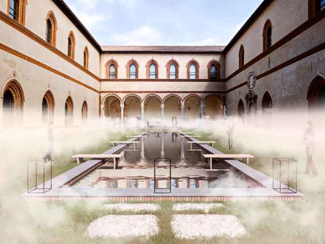 Il progetto interpreta ‘Acqua e Benessere’, uno dei due temi d’indagine dell’edizione 2015 di Water Design, offrendo una visione poetica della Corte Ducale del Castello Sforzesco, cuore della manifestazione.