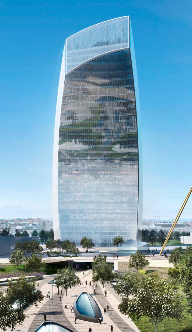 L´edificio, di 31 piani e 175 metri di altezza, a partire dal 2020 ospiterà la nuova sede italiana di PwC (PricewaterhouseCoopers), la società internazionale di consulenza e revisione. Insieme alle torri Isozaki, sede di Allianz, e Hadid, presto nuovo hq di Generali a Milano, l’edificio progettato da Libeskind, che dovrebbe arrivare alla sommità entro fine anno, completa il business district di Citylife.
