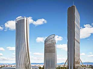 Alla realizzazione dell´involucro dell´edificio contribuiranno il gruppo italiano Focchi di Rimini, che aveva già collaborato alla realizzazione della torre Isozaki-Allianz e che fornirà 27mila metri quadrati di facciate continue, e Holcim Aggregati Calcestruzzi, dover al momento sono in fase di definizione i mix dei calcestruzzi per le elevazioni e i solai con classi di resistenza fino a C45/55, oltre ai calcestruzzi speciali e agli strutturali leggeri (tipo Argelio), ai cementi per le pavimentazioni e a quelli dedicati alle strutture post-tese, che necessitano di resistenze importanti a 2 gg.