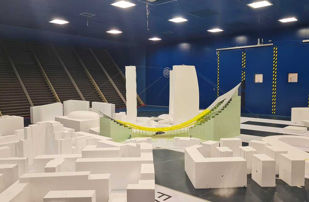 Il test del modello presso la galleria del vento del Politecnico di Milano