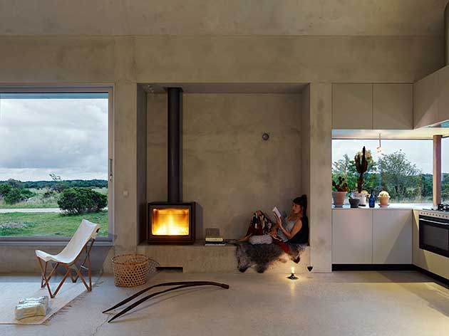 Ogni parte della casa svolge più funzioni ed è immediatamente accessibile dall’esterno, con le finestre che diventano altrettanti quadri sul paesaggio circostante e sul mare che circonda l’isola.