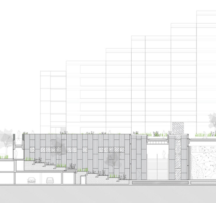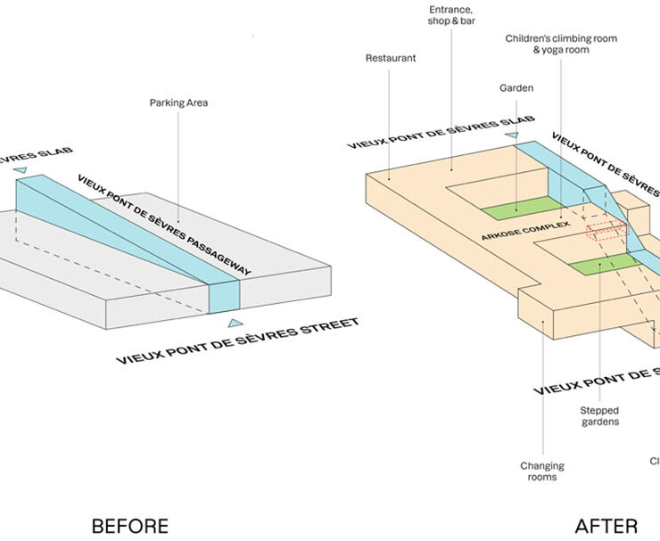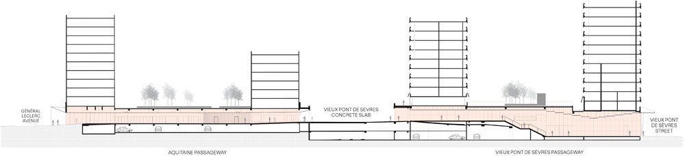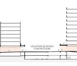 Scavare nel vecchio parcheggio fuori terra, tagliare il cemento e riscoprire la luce del giorno: questi i requisiti secondo Atelier du Pont per creare un nuovo spazio pubblico degno del quartiere. Il vecchio passaggio Vieux Pont de Sèvres, che si apre sulla strada omonima e si trova sotto due edifici con 798 appartamenti costruiti nel 1976 da Daniel Badani e Pierre Roux-Dorlu, era solo una galleria di collegamento e un punto di accesso, non certo un piacevole e sicuro percorso pedonale.