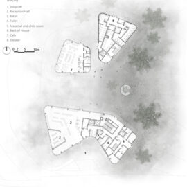 Per ridurre l’impatto sull’ambiente, il planovolumetrico prevede una disposizione decentrata, in modo che la forma complessiva sia divisa in una serie di volumi collegati che ne riducono di fatto la scala percettiva.