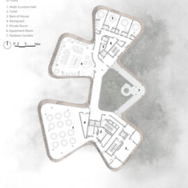 In risposta a questo fenomeno, Jin’ang Yang ha sviluppato per il centro il concept Bamboo Clouds by the Water: un modo per evocare quest’atmosfera fugace e poetica del primo mattino e integrare i quattro elementi del sito – acqua, riva, bambù e nebbia – attraverso l’architettura.