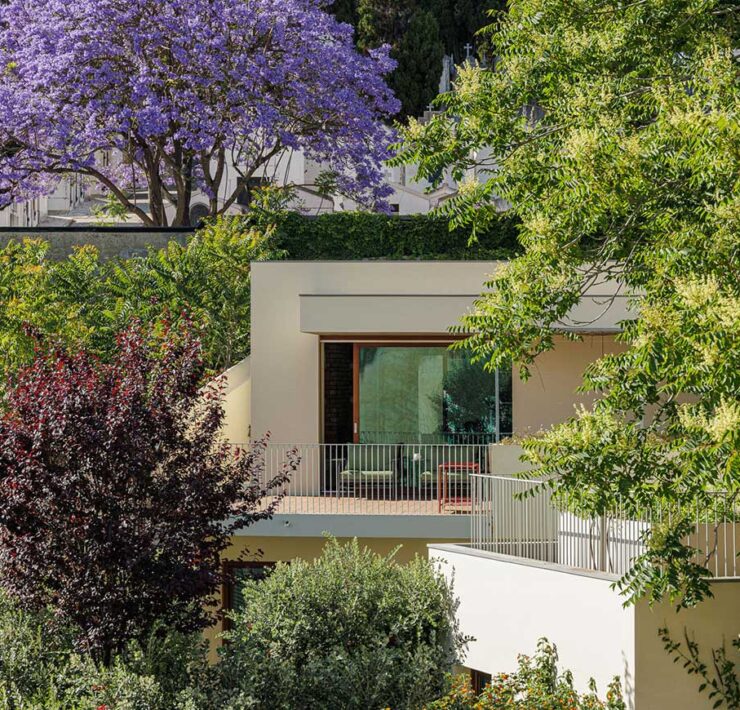 L’abitazione nasce da un corpo compatto dal quale vengono progressivamente sottratte porzioni di materia: tagli, corti e varchi che generano spazi di respiro, zone d’ombra, affacci e connessioni visive.