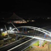 Organizzata su due livelli, la casa separa in modo netto le aree pubbliche da quelle private. Al piano terra si aprono gli ambienti della vita quotidiana – soggiorno, cucina e studio – affacciati sul giardino e sulla piscina attraverso ampie superfici vetrate. L’elemento scenografico della scala sospesa in acciaio bianco introduce una nota scultorea e dinamica, contrapponendosi al fondo scuro del volume di distribuzione.