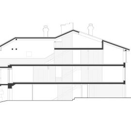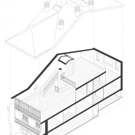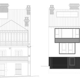 Nel progetto di ristrutturazione della residenza, García-Germán ha reinterpretato il rapporto con la preesistenza, adattando la casa alle nuove esigenze dei committenti, una famiglia numerosa. Valorizzando la pianta caratteristica e tipica di questi lotti, nati originariamente per scopi rurali, l’architetto ha organizzato le funzioni della casa distribuendole lungo i quattro piani dell’edificio in modo inusuale.