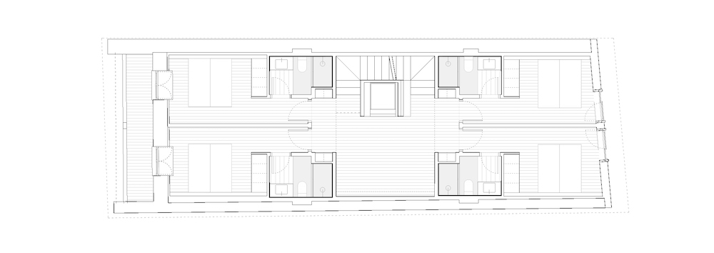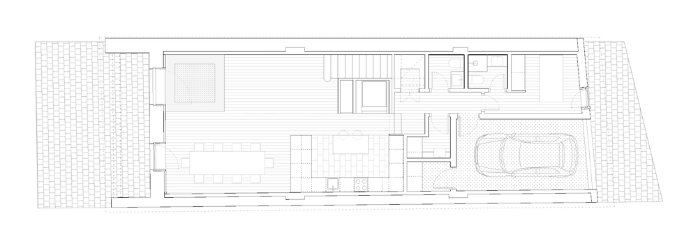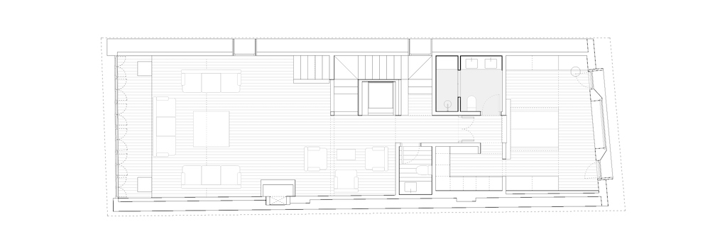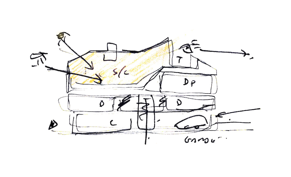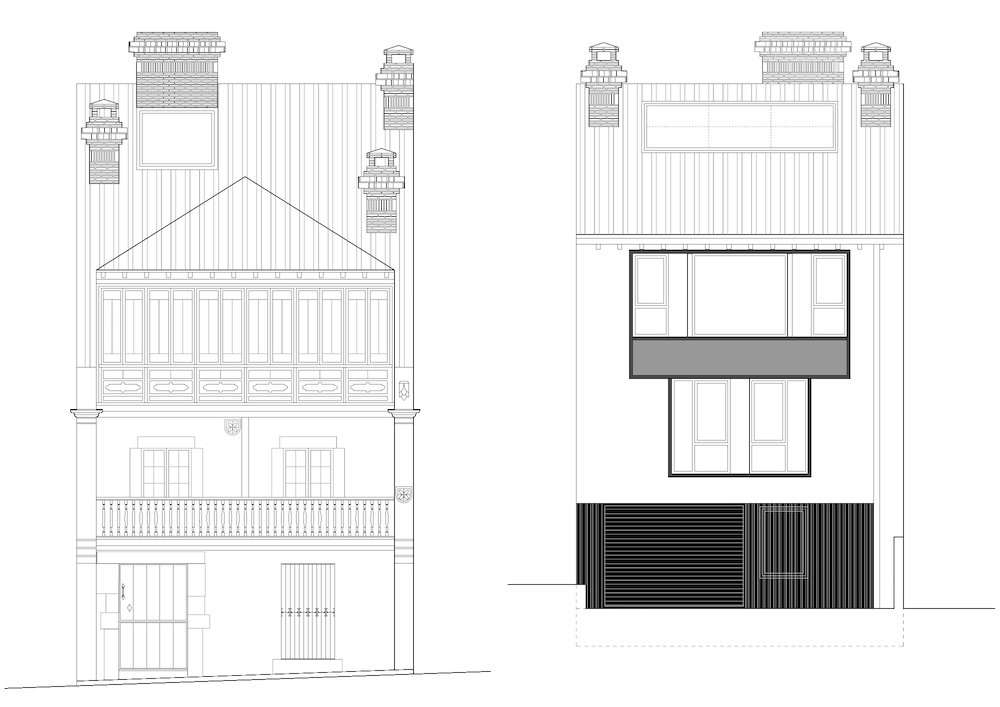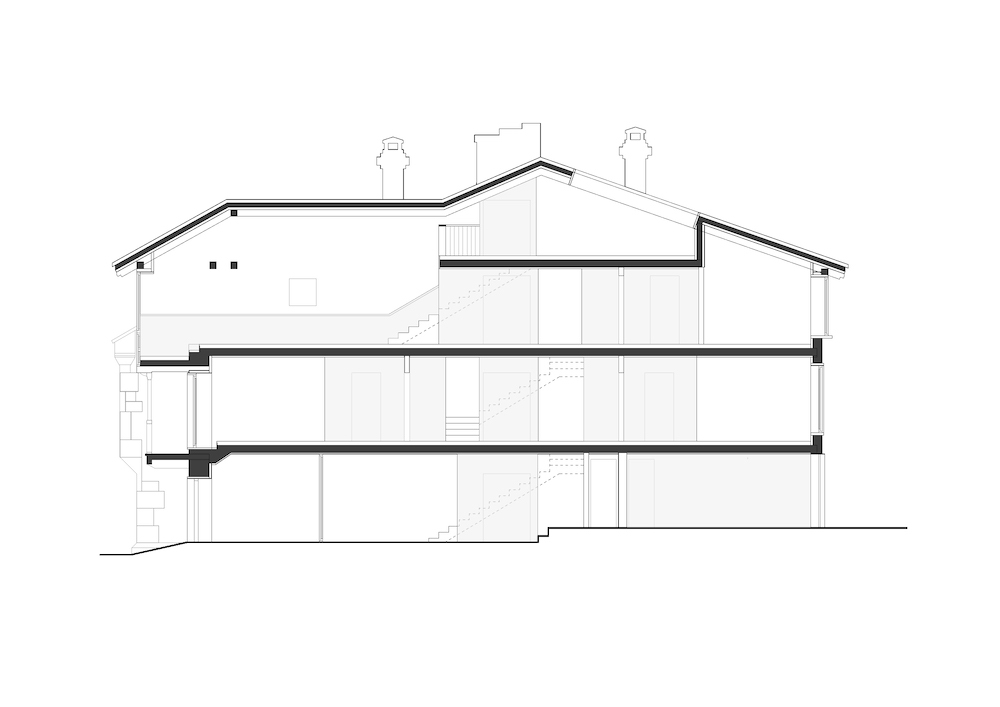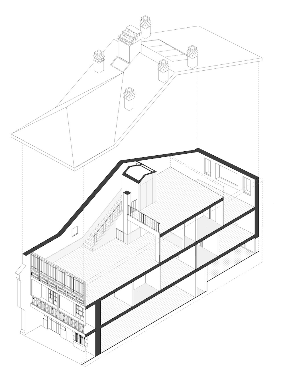 Nel progetto di ristrutturazione della residenza, García-Germán ha reinterpretato il rapporto con la preesistenza, adattando la casa alle nuove esigenze dei committenti, una famiglia numerosa. Valorizzando la pianta caratteristica e tipica di questi lotti, nati originariamente per scopi rurali, l’architetto ha organizzato le funzioni della casa distribuendole lungo i quattro piani dell’edificio in modo inusuale.
