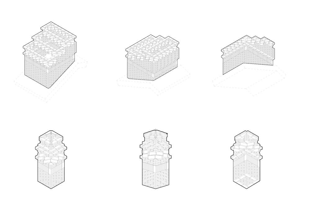 Sono stati inoltre recuperati e ricollocati in situ alcuni pezzi originali tra cui le piastrelle smaltate provenienti da El Capricho. Insieme al progetto dei nuovi camini, Jacobo García-Germán ha usato questi elementi per rafforzare il legame con la memoria storica del luogo.