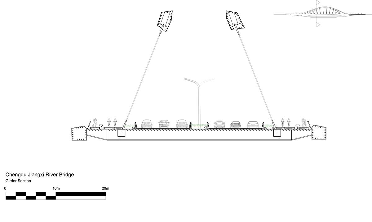 Il Chengdu West First Bridge – stradale, pedonale e ciclabile – misura complessivamente 295 metri.