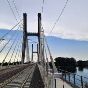 Le travi trasversali prefabbricate del ponte sono state consegnate in cantiere e collegate alle travi di bordo con una giunzione bullonata a piastra di copertura. L’impalcato stradale in calcestruzzo è stato realizzato con pannelli prefabbricati fissati alle travi trasversali mediante getti di calcestruzzo in opera.