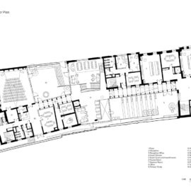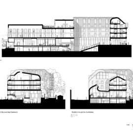 L’approccio “fabric first” dello studio ha inoltre portato a realizzare un involucro altamente performante, con perdite di calore minime, mentre le dimensioni degli spazi, l’altezza del piano terra e finestre ad apertura manuale favoriscono la ventilazione naturale degli ambienti, limitando il ricorso all’aria condizionata, presente solo nell’auditorium e nello spazio del Learning Commons.