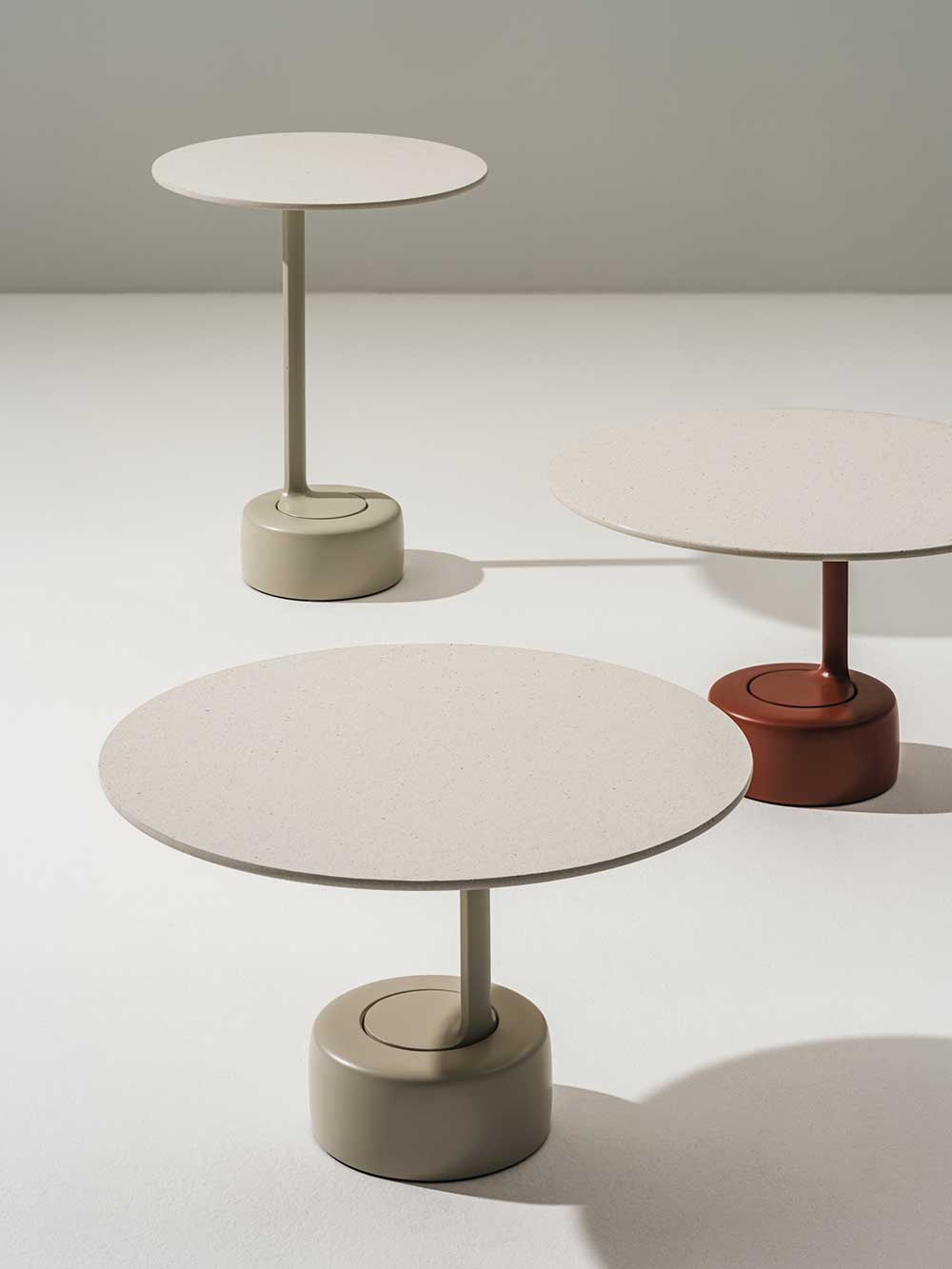 Il risultato è un complemento versatile per ambienti diversi, dal contract all’hospitality al residenziale. Con due altezze, due diametri per il top e la gamma di finiture e colori, Oell è in grado di fondersi con qualsiasi spazio e di connotarne l’atmosfera.