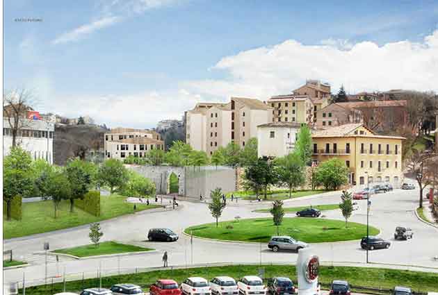 | L´Aquila, Programma di recupero urbano di Porta Barete e Santa Croce; stato di fatto (render studio Laq_Architettura) |