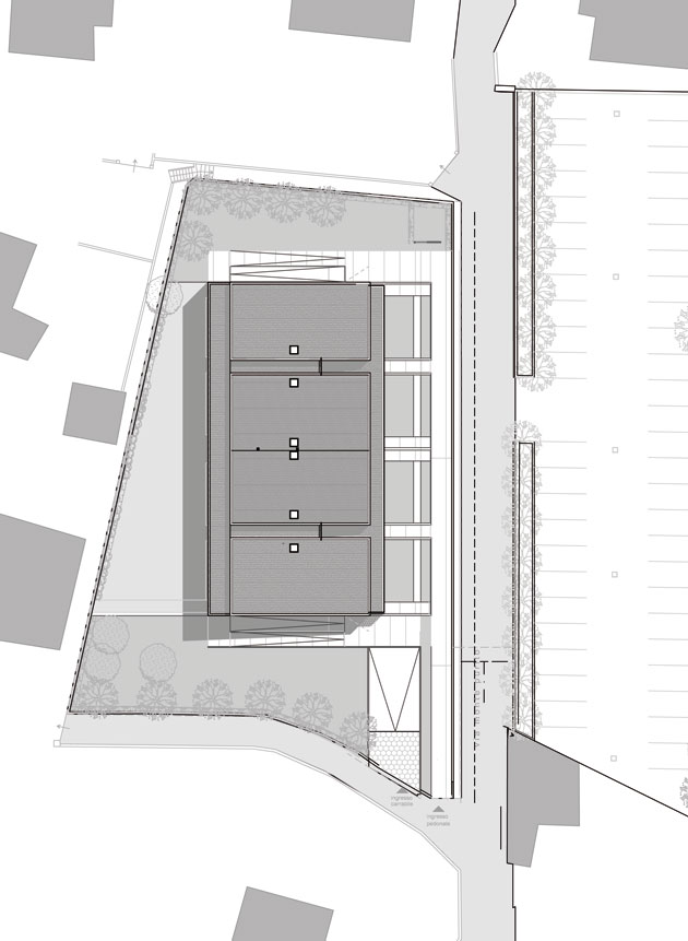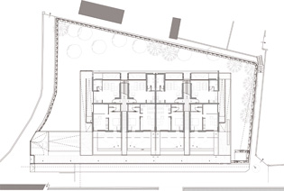 Nell’ambito di questo insieme di condizioni, secondo gli autori, il progetto parte soprattutto dall’idea di proporre un tipo edilizio alternativo, capace di cambiare la scala di rapporto rispetto all’intorno, ma soprattutto di “evocare un carattere alpino riferibile alle abitazioni che preesistevano all’urbanizzazione massiva degli ultimi decenni”. L’impronta architettonica del progetto è chiaramente moderna, con dichiarati richiami alle trame architettonico-strutturali di Terragni o alla nordica ed astratta essenzialità di Arne Jacobsen, ma è una modernità che partendo dalla ricerca dei principi di base dell’architettura vernacolare si muove verso un radicamento ed un adattamento ai caratteri specifici del luogo. La composizione dei fronti e degli spazi riprende in modo evidente l’alternanza di ombre e luce nei portici presenti nelle costruzioni rurali.