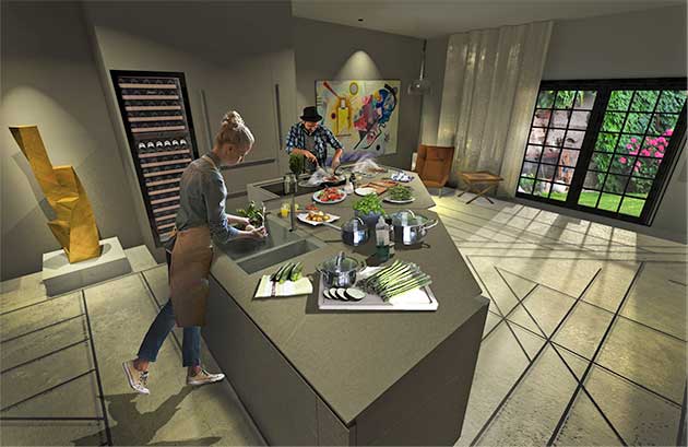 Il primo team di progettazione, è costituito da Michele Caponigro e David Freire con il progetto Oasi Kitchen Garden, dedicato al freelance. Un ambiente puro, sano, libero in cui le azioni del lavoro da casa e del cucinare si innestino l’una con l’altra con la massima funzionalità. Uno spazio rilassante e di lavoro, organizzato e sostenibile, ergonomico e versatile. Velocità e facilità delle azioni, aria pulita e spazio salutare: un’oasi di piacere nello spazio del quotidiano.