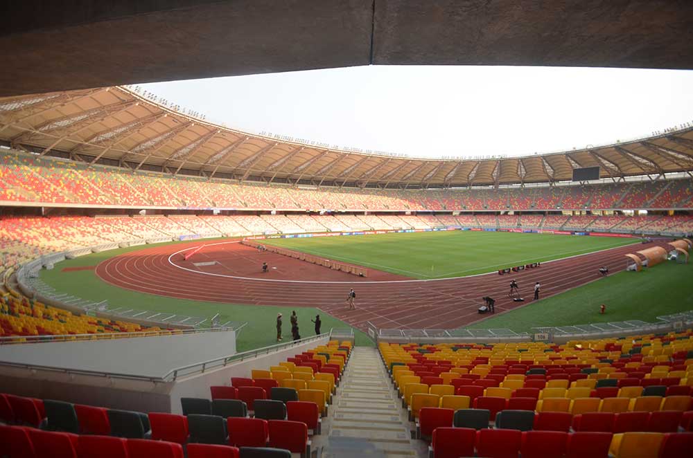 Concepito come una struttura su due livelli serviti da un unico spazio condiviso, lo stadio – che nei colori e materiali riprende elementi della tradizione locale – è un impianto sportivo sicuro e confortevole progettato secondo gli standard internazionali e in conformità con le norme Fifa e Iaaf.