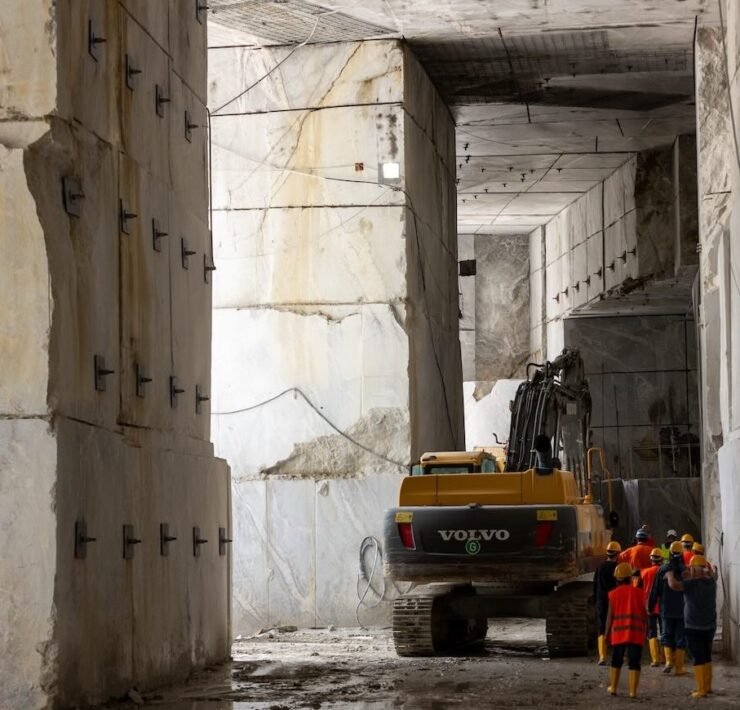 L’installazione trasforma la percezione del marmo, tradizionalmente simbolo di stabilità e perfezione, presentandolo come uno strumento lontano dal suo tradizionale ruolo decorativo.