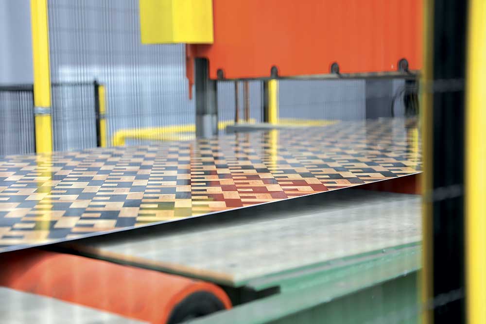 Il procedimento, basato su coil coating con inchiostri inorganici, consente la riproduzione di colori, pattern e texture mantenendo la formabilità del materiale in fase di piega, foratura o montaggio.