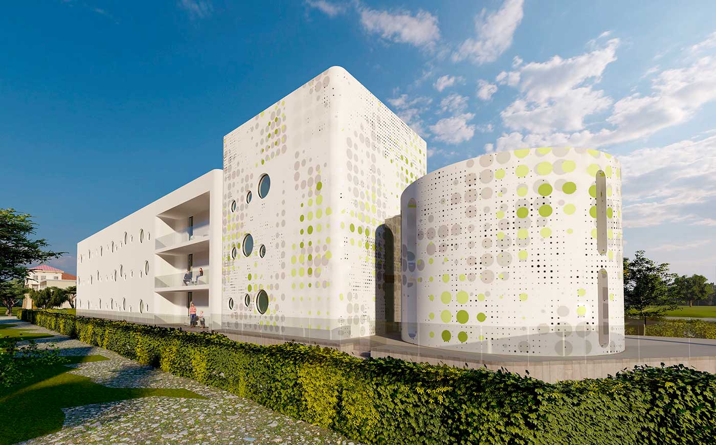Progetto di facciata per una nuova scuola in provincia di Ravenna.