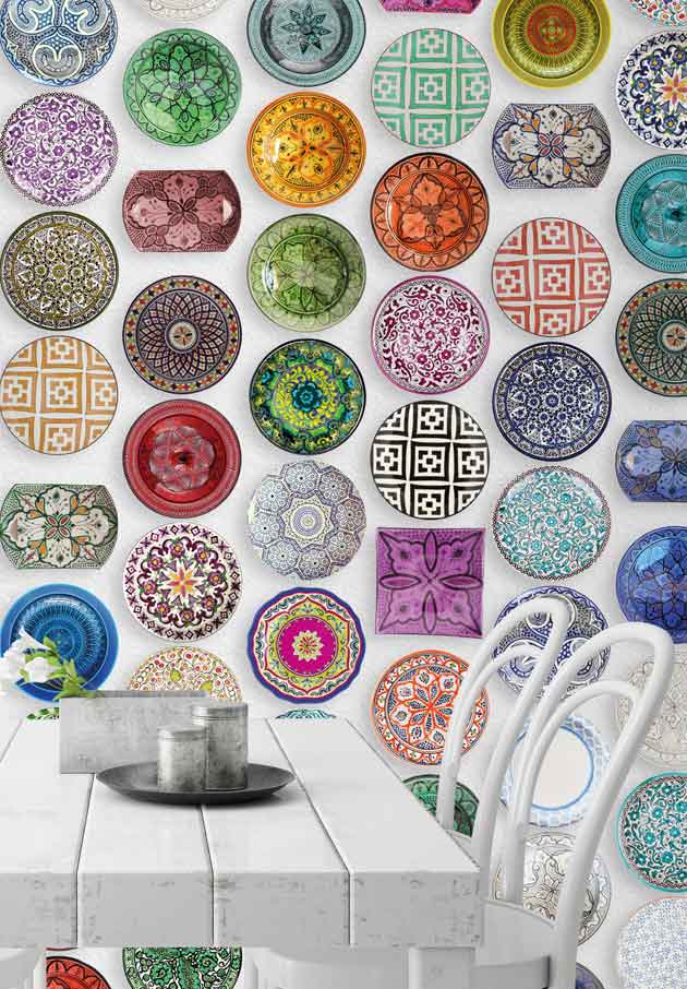 Per esempio la collezione Mediterraneo, parte del catalogo Wallpepper Trend-Line, interpreta con allegria i motivi tipici della nostra cultura: piatti in maiolica colorata creano una texture pittoresca nel soggetto “Casablanca”, mentre le popolarissime azulejas ispirano “Granada”, caleidoscopio di tratti e disegni rigorosamente nella tonalità del bianco e del blu. “Milano” ricorda invece il gioco di piastrelle esagonali proposte qui nelle sfumature del grigio e beige per una cucina dall’atmosfera retrò.