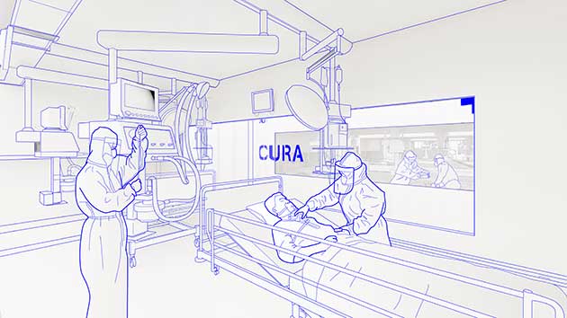 CURA consiste in una unità compatta di terapia intensiva per pazienti con malattie respiratorie, alloggiata all’interno di un container intermodale a biocontenimento (grazia a un sistema a pressione negativa), della lunghezza di circa 6 metri. Ogni unità funziona in autonomia e può essere spedita ovunque.