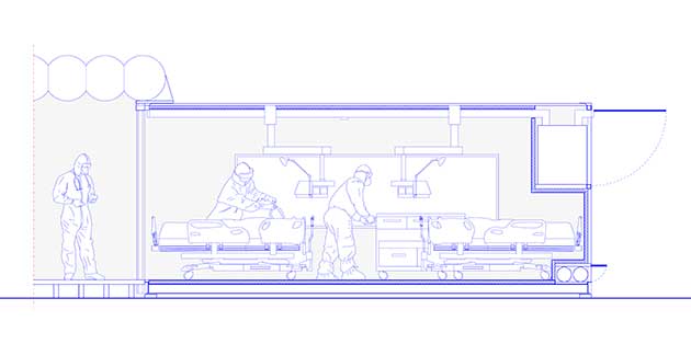 Le unità puntano ad essere rapide da installare quanto una tenda di un ospedale da campo, ma sicure per le attività mediche quanto un reparto di isolamento.