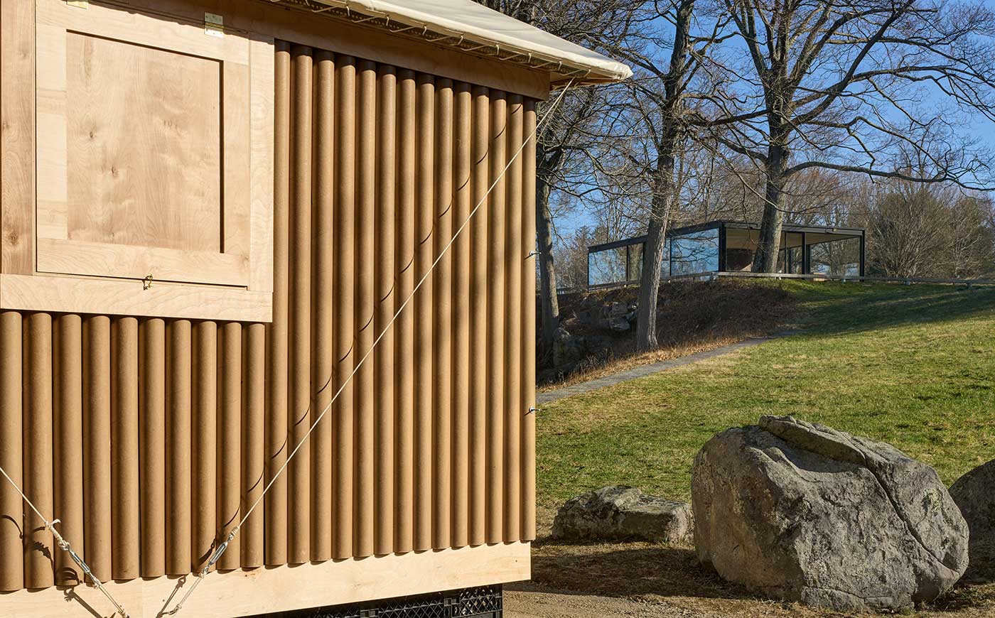 L’installazione Shigeru Ban: The Paper Log House at The Glass House, si completa, nel padiglione Da Monsta, con una mostra didattica e il video in time-lapse della costruzione e del montaggio.