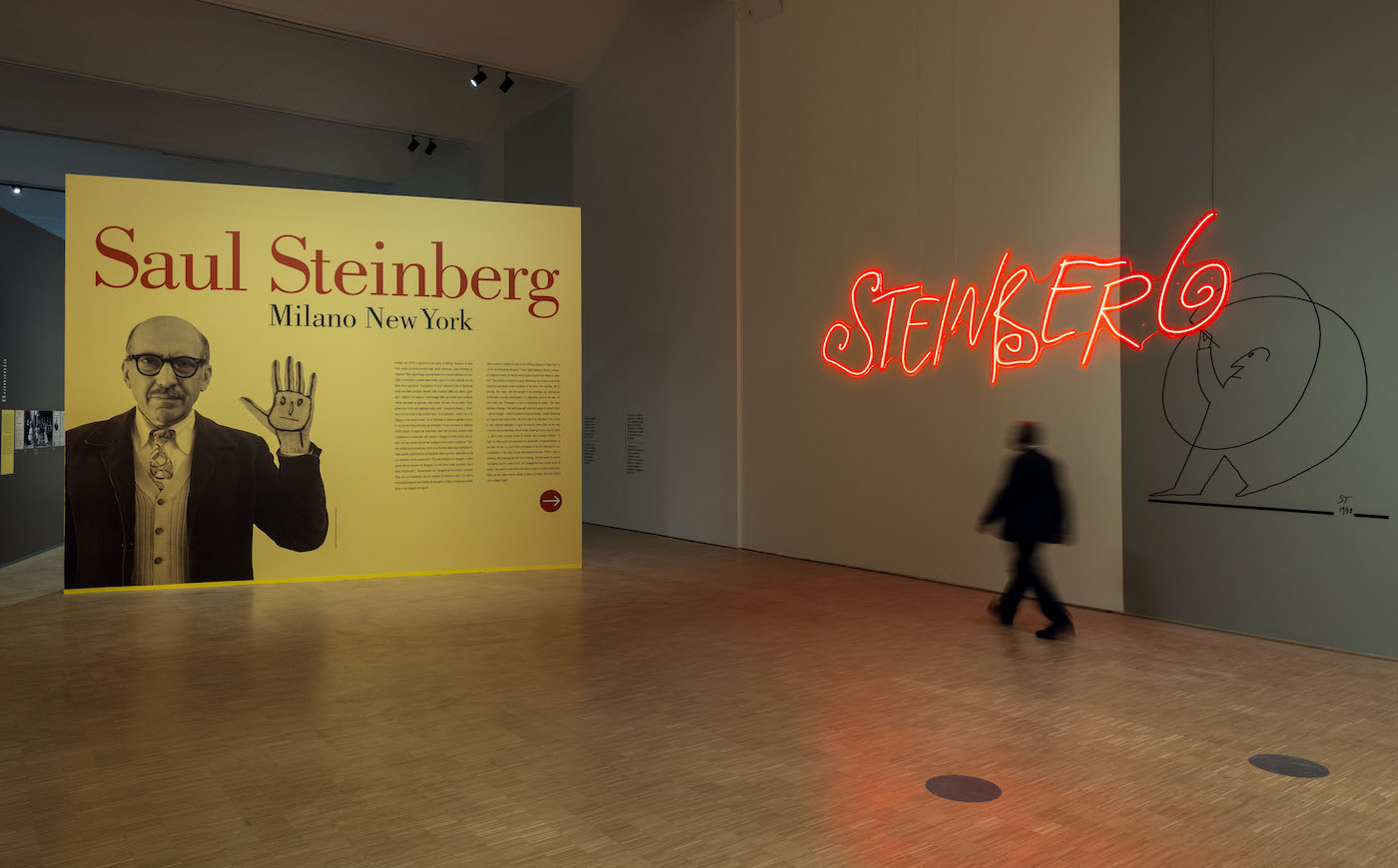 In Triennale Milano prosegue fino al 13 marzo 2022 la mostra dedicata a Saul Steinberg (1914-1999), a cura di Italo Lupi e Marco Belpoliti con Francesca Pellicciari. Un’esposizione ricca di disegni a matita, a penna, a pastello; opere realizzate con timbri e ad acquerello, maschere di carta, oggetti/sculture, stoffe, collages, a documentare la intensa e multiforme attività artistica di Steinberg.