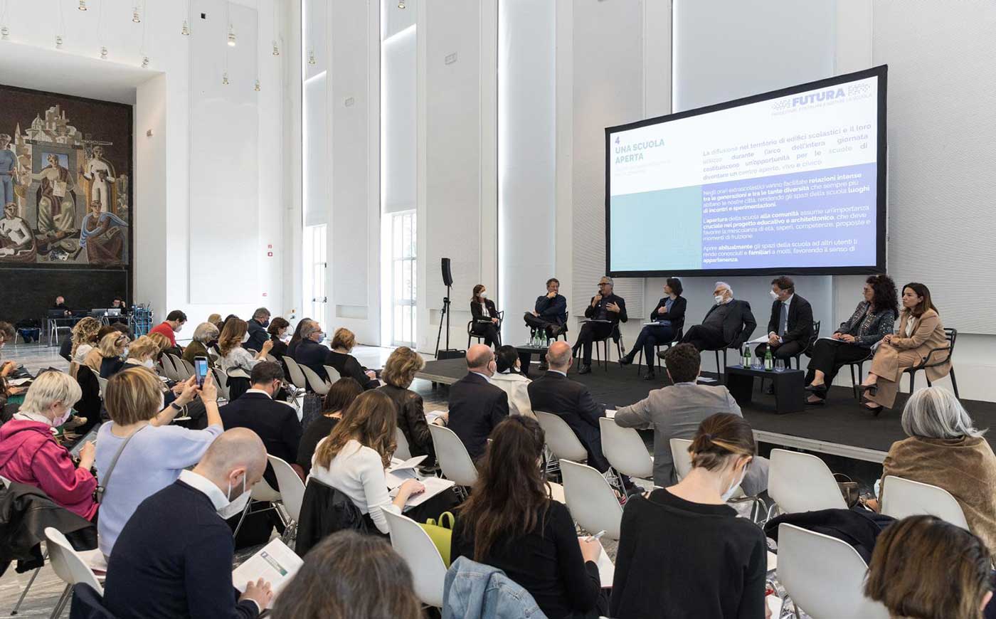 «Diamo forma ai nostri edifici, e da quel momento i nostri edifici danno forma a noi», ha ricordato, citando Winston Churchill, Cino Zucchi, che ha proseguito: «una scuola contemporanea deve saper incarnare nei suoi spazi fisici e nel suo rapporto con l’intorno urbano tutti i valori di questo secolo – primi tra tutti sostenibilità e inclusività – attraverso una pedagogia ‘implicita’ e aperta. Tra gli estremi del monumento e del puro contenitore, gli edifici scolastici dovranno favorire nuovi modelli di apprendimento ospitandoli in un luogo accogliente e flessibile, capace di diventare lo sfondo amato di una comunità allargata e di dare forma alla metamorfosi ambientale delle città».