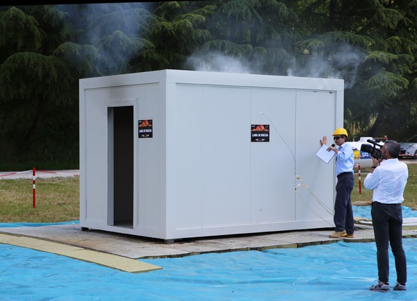 Lo scorso giugno Roof & Wall Panel e Rockwool, alla presenza del Dr. Pierpaolo Musolino, responsabile qualità e ambiente di RW Panel e sotto la direzione scientifica del laboratorio specializzato L.S.Fire, hanno dato vita a una prova dal vero realizzata sulla base del test ufficiale – ISO/DIS 13784-1 – per la determinazione della reazione al fuoco dei pannelli sandwich.