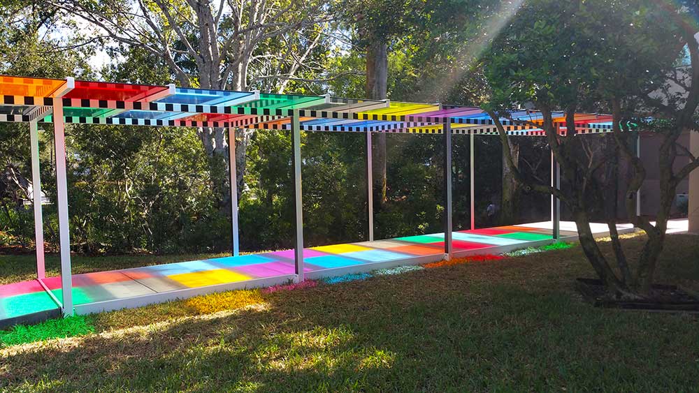 Esponente di spicco dell’Institutional Critique – la tendenza all’interrogazione critica delle istituzioni artistiche emersa intorno alla fine degli anni Sessanta del secolo scorso – Daniel Buren ha utilizzato per la prima volta nel 1965, come supporto per la propria pittura ridotta al grado 0, una tenda da sole, il cui motivo a bande verticali bianche e colorate di 8.7 cm è divenuto, da quel momento in avanti, un dispositivo visivo utilizzato dall’artista in tutti i propri lavori, dalle mostre alle commissioni pubbliche.