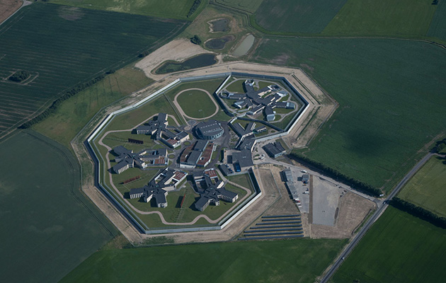 Vista area del penitenziario. La prigione ospita 250 persone, confinate in quattro ali di prigione standard e una di massima sicurezza. Nei dieci edifici, che coprono una superficie complessiva di circa 35 mila mq., sono anche ospitate alcune unità destinate ai visitatori e al personale, oltre a spazi per lo svolgimento di attività lavorative e ricreative (foto, Torben Eskerod) |