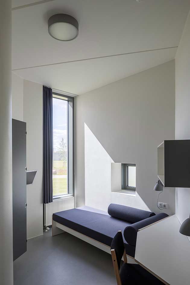 Le celle dei detenuti, illuminate da luce naturale e con vista sulla campagna circostante, sono progettate secondo un nuovo standard, con una parete curva che consente al personale di custodia di osservare la maggior parte dello spazio interno direttamente dalla porta.