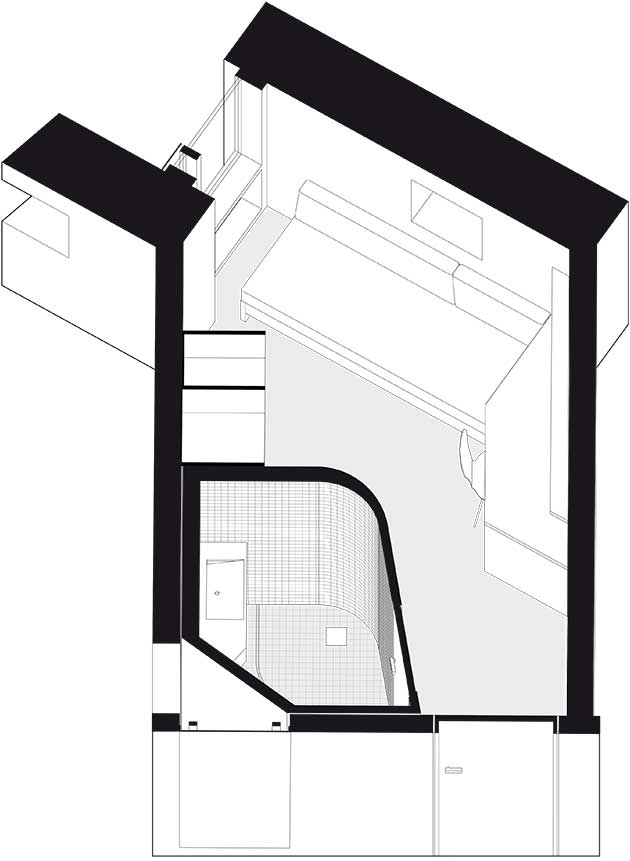 Assonometria della cella (courtesy C.F. Møller Architects) |